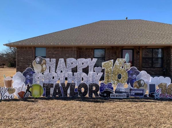 We offer a full variety of yard signs for birthdays, anniversaries, welcome baby, baby showers, school events....you name it...We CAN DO IT!! All of our birthday signs come with HUGE 4 foot numbers and our signs are always large and are fully customizable. Most yard signs are set up around 9pm and left 24 hours. If you need a custom setup time, let us know!